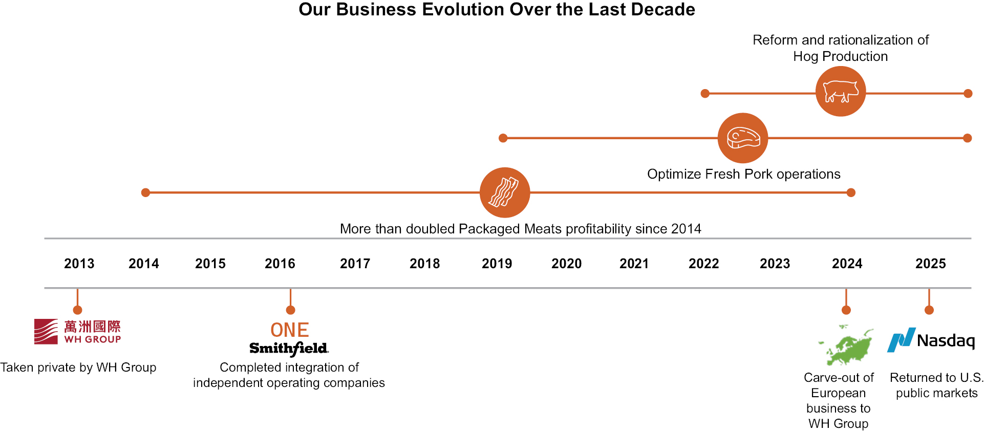 Prior to August 26, 2024, we conducted business operations in the United States, Mexico and Europe. On August 26, 2024, we completed the carve out of our European operations, or the European Carve-out, pursuant to which we transferred our operations in Europe to WH Group. Following the European Carve-out, we principally engage in operations in the United States and Mexico. Unless otherwise expressly stated or the context otherwise requires, the description of our business included or incorporated by reference in this prospectus reflects our business after giving effect to the European Carve-out. The results of operations, assets and liabilities, and cash flows of the European operations as presented in our consolidated financial statements included or incorporated by reference in this prospectus have been condensed into separate line items and presented in the consolidated statements of income, the consolidated balance sheets and the consolidated statements of cash flows, respectively, as discontinued operations for all periods presented. Unless otherwise expressly stated, the financial information of our company included or incorporated by reference in this prospectus reflects the historical financial statements of Smithfield, as retroactively adjusted to remove the impact of the discontinued operations where applicable.