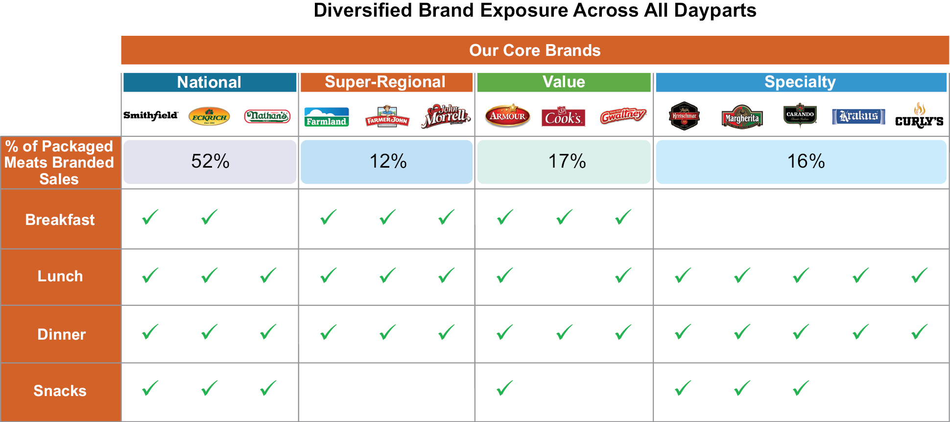 Smithfield is an American food company and an industry leader in value-added packaged meats and fresh pork with over $14 billion in annual sales. We employ approximately 32,000 people in the United States and approximately 2,500 people in Mexico. We maintain high-quality standards, meeting demand through our strong relationships with thousands of U.S. family farmers and blue-chip global customers. We are a market leader due to our scale, diverse portfolio of strong brands and products and reputation as a trusted partner known for quality. We market our products under a leading portfolio of iconic brands including Smithfield, Eckrich and Nathan’s Famous, among many others.