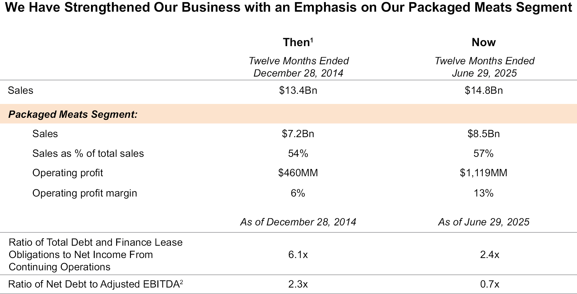 Our ambition is to be the most trusted food and protein company in North America as we feed people in the United States and around the world, while embracing a culture of responsibility, operational excellence and innovation. We produce and distribute a wide variety of packaged meats and fresh pork products both domestically and abroad. We conduct our operations through three reportable segments: Packaged Meats, Fresh Pork and Hog Production. We are a leading provider of packaged meats in the United States, with the number two branded market position by volume across the 25 key packaged meats categories in which we compete, according to Circana. These 25 key packaged meats categories represent a total addressable market opportunity of $46 billion annually, of which we had an approximate 20% market share by volume (including our private label sales) as of December 2024. We are also the largest fresh pork processor in the United States with approximately 23% market share as of May/June 2024, according to National Hog Farmer. We sell our products across diverse channels including retail and foodservice, distributing in all 50 states in the United States, as well as export markets. We are a leading exporter of pork and pork products, with export sales representing 12% and 13% of our total sales for the six months ended June 29, 2025 and the fiscal year ended December 29, 2024, respectively.